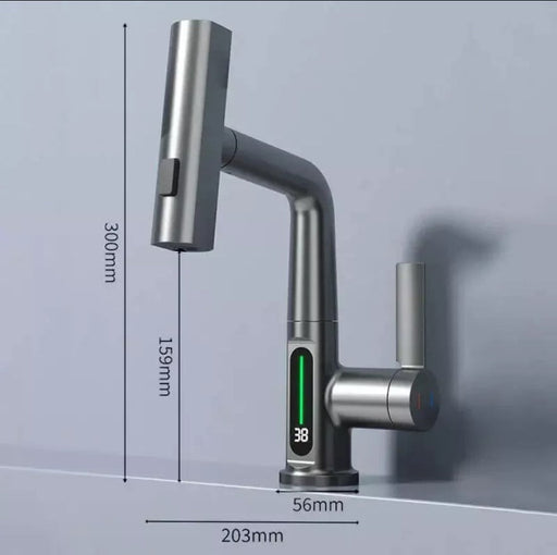 Upgrade your kitchen or bathroom with our Pull-Out Waterfall Kitchen Tap in chrome silver color. Featuring a temperature display and three versatil...