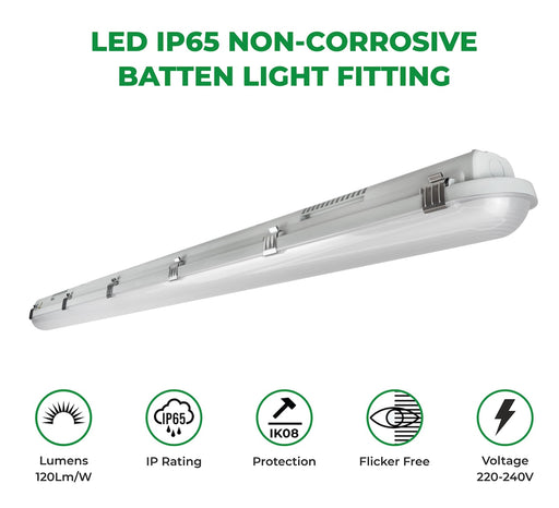 View full detailsPack of 2 Premium 50W 5 FT LED Batten Non Corrosive IP65 150cms Ultra-bright