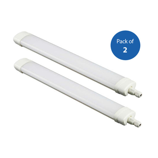 View full detailsPack of 2 18W LED Triproof Batten Tube Lights, 60cms, 4000K, IP65 Waterproof, No UV and IR Radiation, Super Bright Tube Light for Kitchen, Living Room, Bathroom, Office